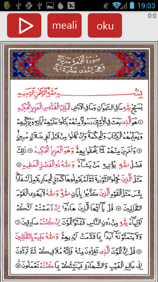 Cuma Suresi - Arapça Okunuşlu - Mealli Kur'an-ı Kerim ...